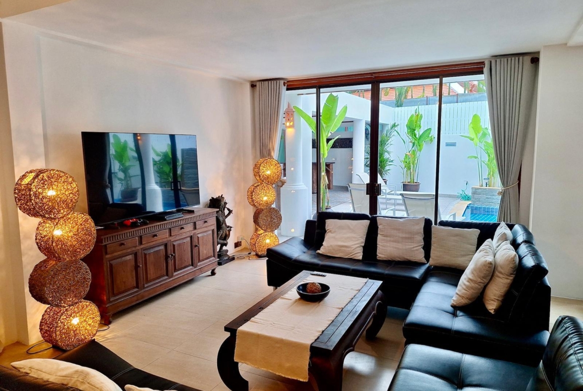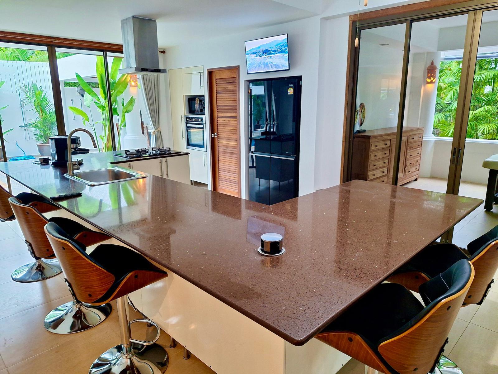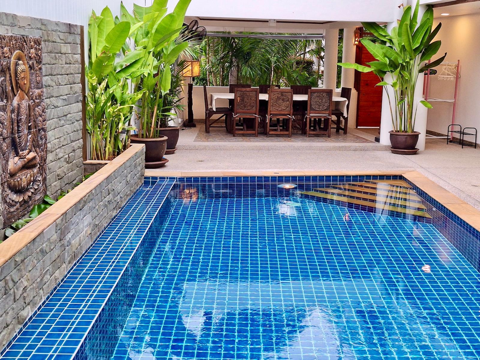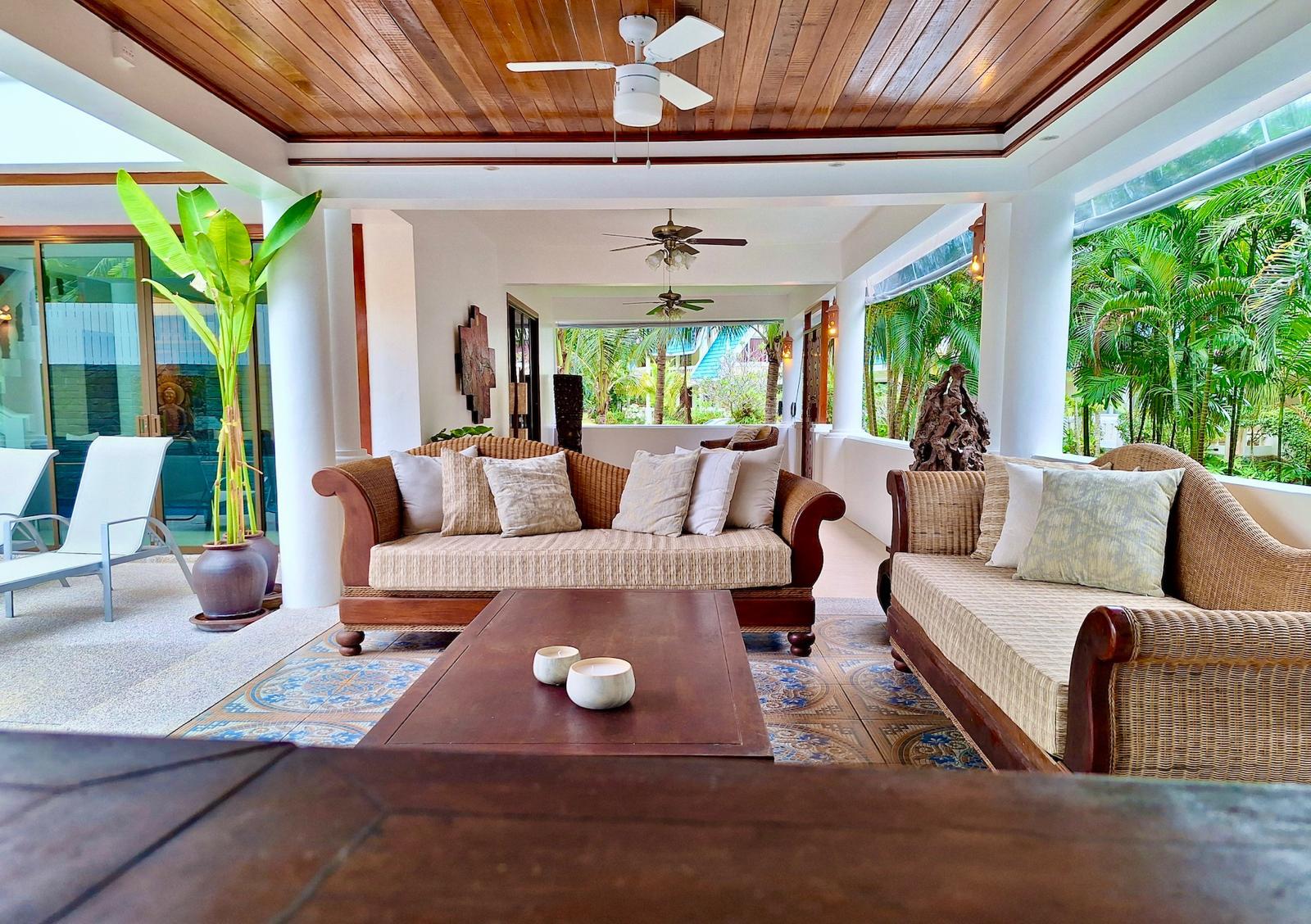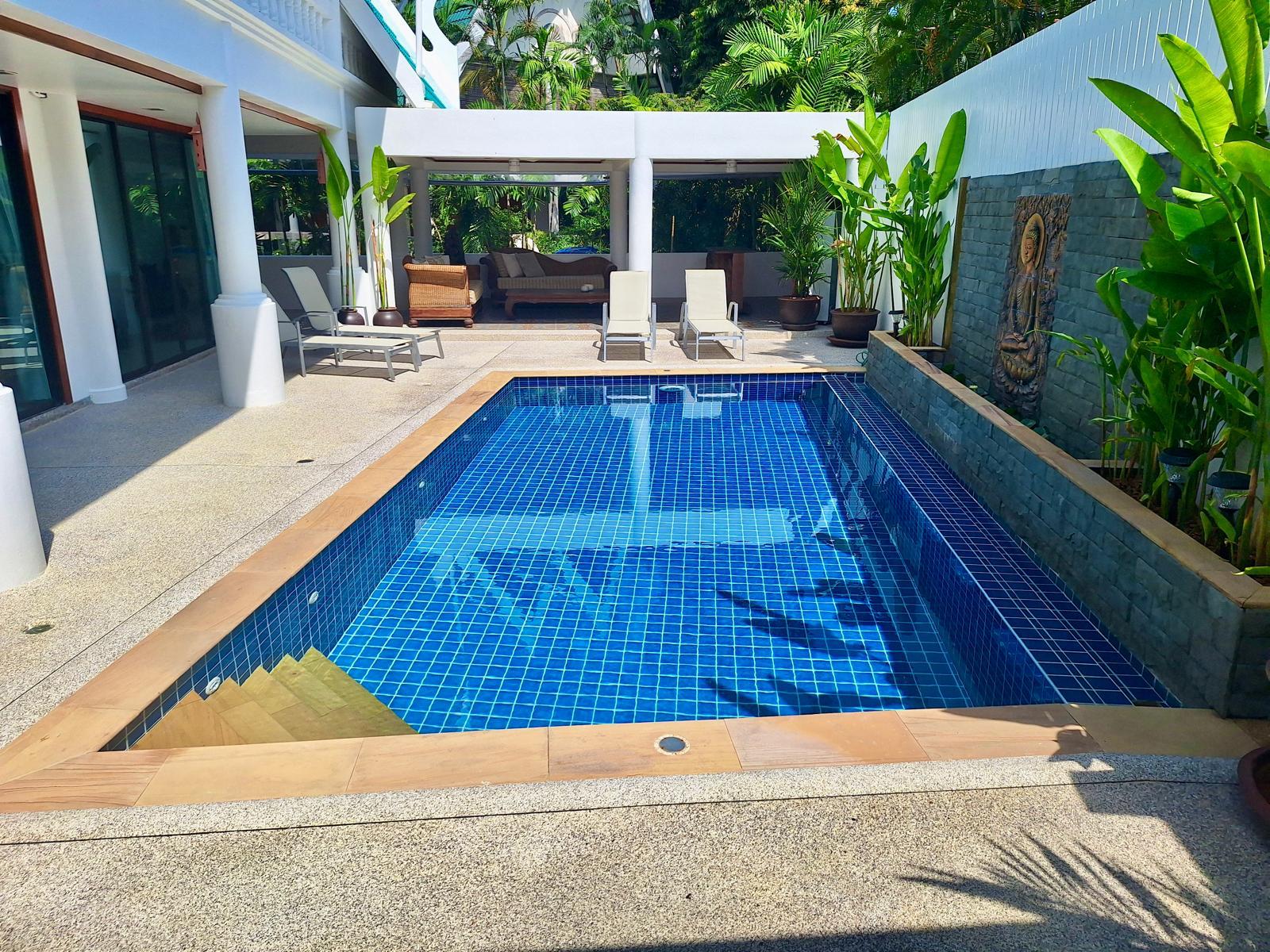 Welcome to this Tropical 5-Bedroom Pool Villa for Sale, a beautifully renovated 5-bedroom tropical home set in a lush gated estate just 1 km from Nai Harn Beach.